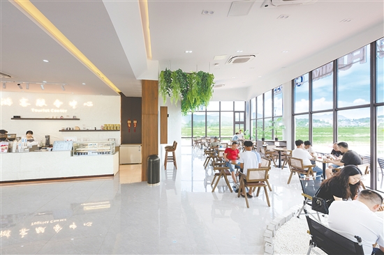 大纲村红色驿站成了游客与村民休憩、品咖啡的好去处。