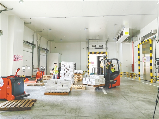 记者走访白沙园区看到,A1大型冷库宛如一个超级大冰箱,在这接近零下20℃的低温环境中,各类货品分类清晰、码放有序。库门外,叉车来回运作,工作人员正对出库货品进行最后核验。开平市联兴食品有限公司负责人古彩初表示:“白沙园区的冷库服务水平高、收费合理,加上毗邻高速公路,交通便利,极大节省了我们的物流成本。”