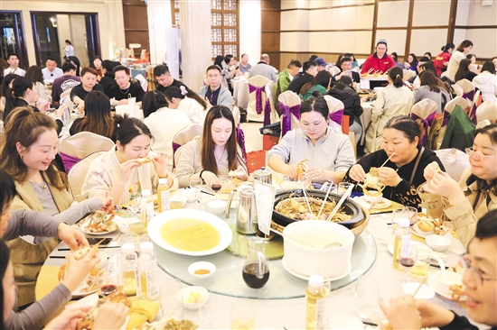 崖门水蟹端上餐桌后,食客们纷纷忍不住“啜一口”。