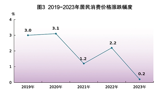 全年居民消费价格比上年上涨0.2%。分类别看,食品烟酒类价格上涨0.1%,衣着类价格下降0.2%,居住类价格下降0.5%,生活用品及服务类价格上涨2.2%,交通通信类价格下降1.8%,教育文化娱乐类价格上涨3.0%,医疗保健类价格上涨2.0%,其他用品及服务类价格上涨1.0%。工业生产者出厂价格下降1.1%,其中轻工业下降0.5%,重工业下降1.7%。
