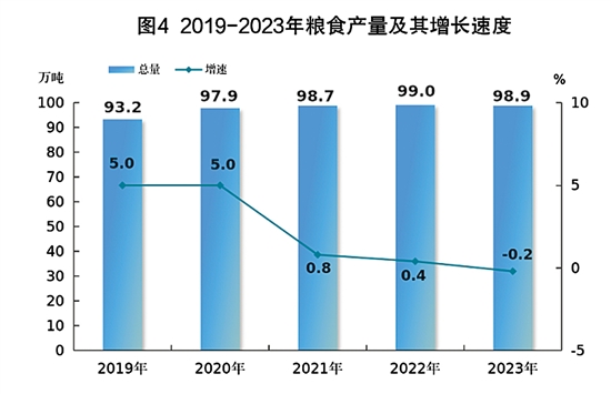 全年粮食产量98.9万吨,比上年下降0.2%。糖蔗产量6.9万吨,下降9.1%;油料产量3.8万吨,增长10.5%;蔬菜产量202.1万吨,增长2.4%;园林水果产量46.3万吨,增长14.8%。