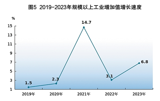 全年全部工业增加值比上年增长6.4%。年末规模以上工业企业3516家,全年增加值增长6.8%,其中,国有及国有控股企业增长4.1%,外商及港澳台投资企业增长4.2%,股份制企业增长9.1%。分轻重工业看,轻工业增长3.7%,重工业增长8.9%。分企业规模看,大型企业增长9.4%,中型企业增长0.7%,小微型企业增长9.7%。