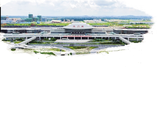 江门站与珠三角北部的广州南站、佛山西站,东部的深圳北站,共同形成了粤港澳大湾区内联外通的轨道交通枢纽“黄金三角”。