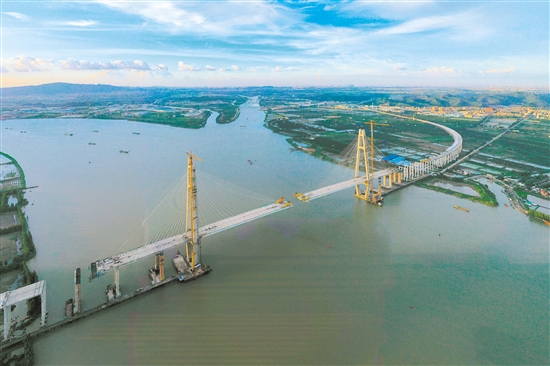 →中开高速银洲湖特大桥建设顺利。 郭永乐 摄