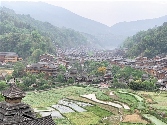 除了热闹非凡的“村超”外,你还可以在这里欣赏自然美景。到加榜梯田,看梯田鳞次栉比,层层叠叠,梯田间如银河中的繁星般散落着几座独具特色的苗乡吊脚楼。清晨云雾弥漫,吊脚楼便在氤氲中若隐若现,飘渺悠然,让人感觉仿佛置身于仙境之中。