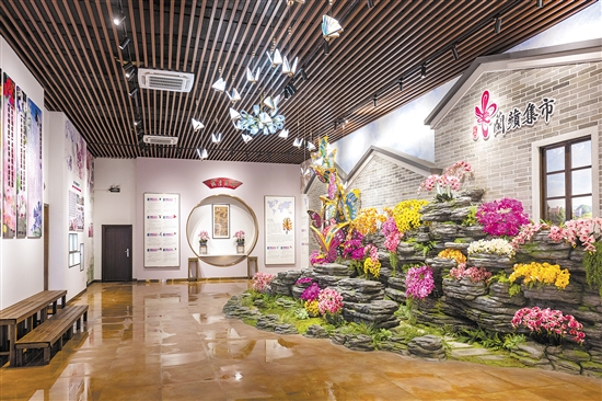 崖门镇打造的“兰苹集市”是一个花卉展销平台,内设兰花培育种植科普室。