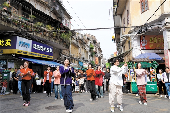 “舞乐快闪666”活动在长堤历史文化街区上演。