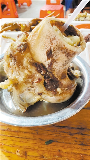 月山美食牛筒骨。