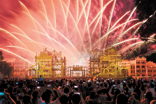 打铁花+火壶,舞火龙+烟花……今年国庆假期,赤坎华侨古镇以超50场非遗大戏与中西演艺节目,与超25万名游客同庆同乐。该景区相关负责人介绍,假期后,赤坎华侨古镇还把“火秀”列为每天的常规节目,满足游客需求。