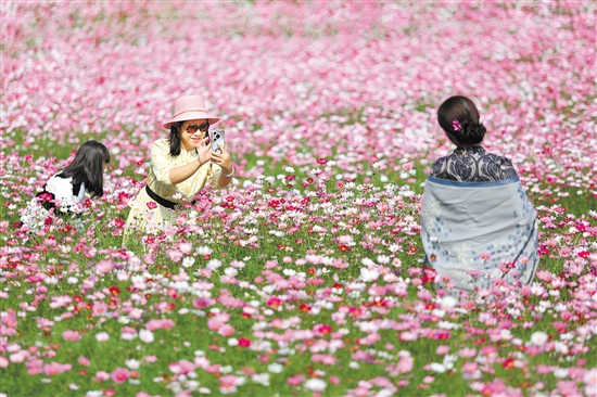 格桑花海吸引市民游客前来拍照游玩。