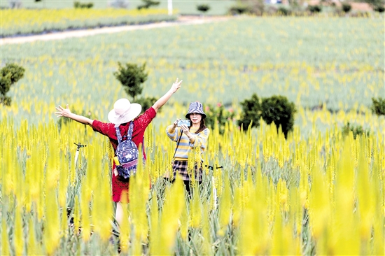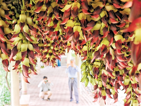 台山市瑷露德玛芦荟庄园的芦荟花盛放,吸引游客拍照留念。罗开传 摄