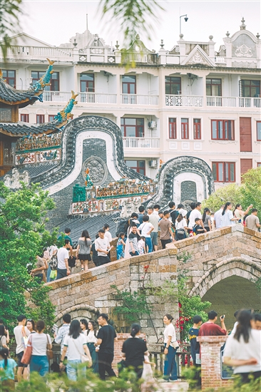 触摸立体华侨史诗。江门是中国第一侨都,530万名港澳同胞及海外华侨华人的根脉在此绵延。自力村碉楼群凝固着中西交融的建筑智慧,罗马柱与蚝壳墙共生,每处细节都在诉说华侨“落叶归根”的深情。赤坎华侨古镇的600座骑楼如流动的南洋史诗,穿行其间恍若踏入时光隧道。中国侨都华侨华人博物馆里,泛黄的银信与老照片将“海外拼搏—反哺家乡”的百年故事,化作触手可及的温度。