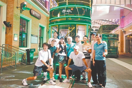 9月20日晚,包括香港演员郭晋安在内的10余位香港艺人网球联盟队成员在结束比赛后来到赤坎华侨古镇,乘坐铛铛车缓缓穿行于百年骑楼之间。这座始建于明末清初的古镇,拥有全国规模最大的侨乡骑楼建筑群,600余座中西合璧的骑楼沿潭江而立,青砖灰瓦与霓虹灯光交织出一幅时空交错的画卷。当晚,新版《火秀》非遗演出在古镇上演,1600℃的炽热铁花泼洒成星河,碉楼投影与水幕吊环共舞,打铁花、火壶等表演熔铸成一台视觉盛宴。香港演员、主持人洪永城说:“夜晚的古镇充满神秘感,铛铛车让我们能慢下来欣赏这些历史建筑,华侨当年漂洋过海又回来建设家乡的故事特别打动人。”香港演员、主持人李思雅也感慨道,以往来江门都是为了参加网球比赛,无暇他顾,此次终于有机会好好游玩一番。踏入赤坎华侨古镇,她感觉仿佛穿越回了旧时光,下次再来一定要约上朋友,在此住上一晚,留出更多时间尽情体验。