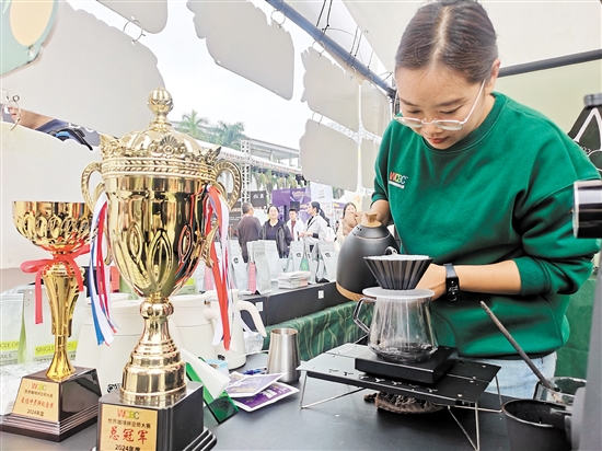 在第三届中国侨都(江门)咖啡节(以下简称“咖啡节”)上,来自佛山青烘咖啡的叶祉谊沉浸在收获的喜悦中。2月14日,在为期2天的WCBC世界咖啡拼豆师大赛2024年度总决赛中,叶祉谊拿下了拼豆师年度总冠军,第二天许多顾客慕名而来,要一尝冠军冲泡的手冲咖啡。
