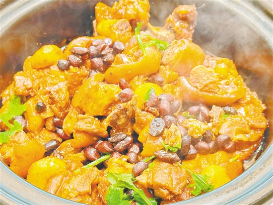 招牌菜“云南黑花生焖猪手”便是匠心选品的成果。黄晓霞特意前往云南临沧海拔1500米的山地,与当地农户敲定黑花生的合作。与普通花生不同,这种黑花生含有富硒,营养丰富,而且吃起来更香。与土猪手一同焖制,并加入黑蒜调味。出锅时,猪手酥烂脱骨,轻轻一抿便化作满口胶香,黑花生吸饱肉汁,绵密中带着淡淡回甘,连汤汁都被食客拌着米饭抢光,直呼“捞汁送饭超正”!