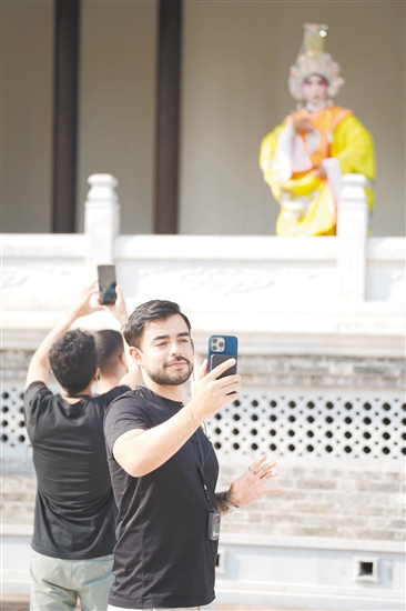 来自墨西哥的毛罗·阿图罗·萨拉萨尔·萨瓦拉不时掏出手机记录下精彩瞬间。他认为赤坎华侨古镇建筑非常精美,通过观看这些建筑,能够想象到这里以前的繁华,“这里独特的华侨文化值得仔细品读,通过这些建筑和历史物件,我似乎看到了人们曾经在此艰苦奋斗的场景,也感受到他们面对外国文化时的自信、开放和包容”。