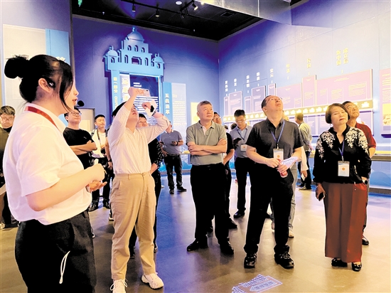 海外华文媒体及涉侨中央媒体、省级媒体代表在中国侨都华侨华人博物馆参观。