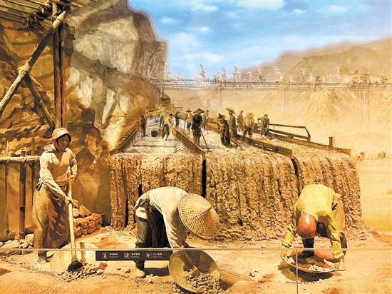 中国侨都华侨华人博物馆还原华工开采锡矿的场景。