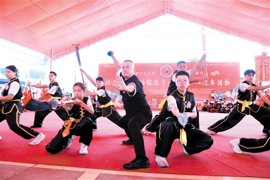 蔡李佛始祖陈享诞辰218周年系列活动现场,蔡李佛弟子展示好功夫。