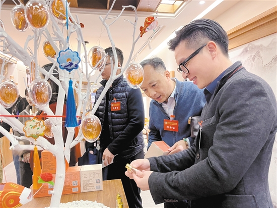 在新会优品江门长堤店,特色文创产品吸引了列席代表们的注意。