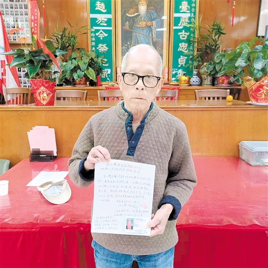 华侨伍元赞写下承诺书,将自家祖屋无偿借出。