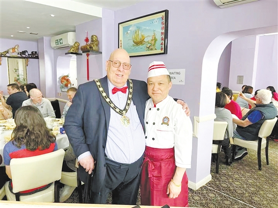 梁迪新(右)的中餐厅深受英国当地人喜爱。