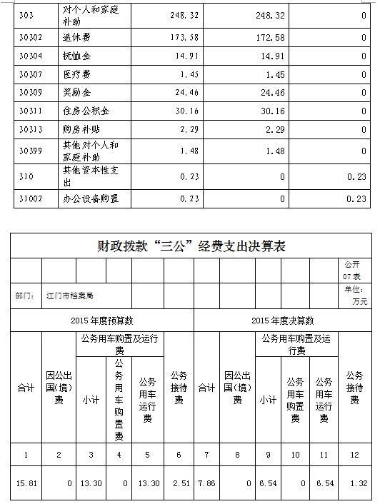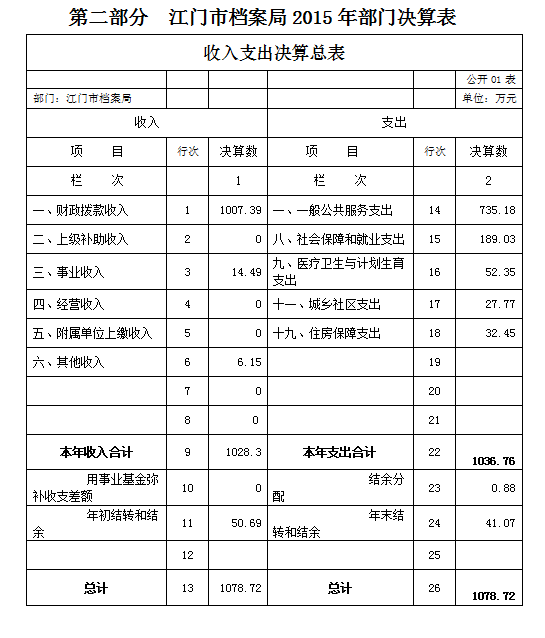 江门市档案局2015年度支出合计1036.76万元。具体如下;