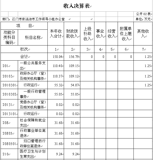 江门市依法治市工作领导小组办公室2015年度收入合计158.04万元。