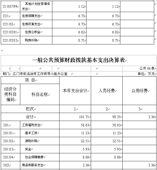 江门市依法治市工作领导小组办公室2015年度一般公共预算财政拨款基本支出101.71万元,其中: