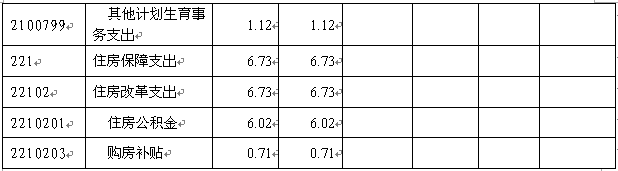 6.住房保障支出(类)住房改革支出(款)6.73万元,比2014年增加0.54万元,增长8.72%,主要原因是人员的变动,相应增加的支出;完成年初预算的98.25%,决算数小于预算数的主要原因是按实际需要安排支出。