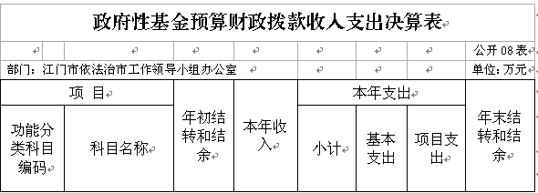 第二部分 江门市依法治市工作领导小组办公室2015年部门决算表