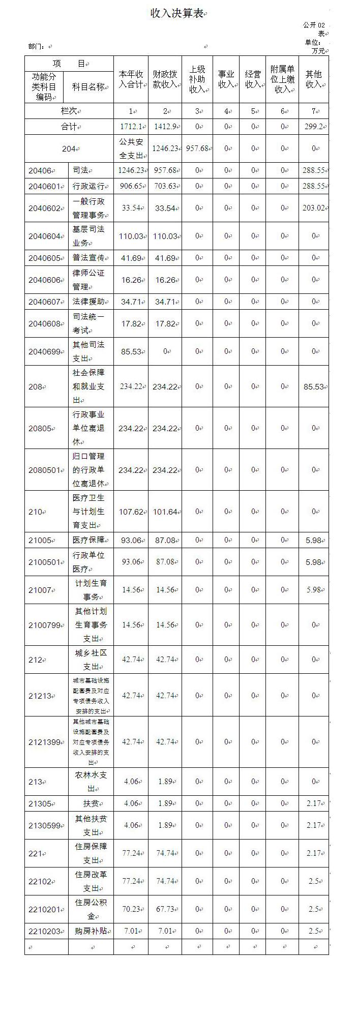 江门市司法局(部门名称)2015年度收入合计1712.1万元。
