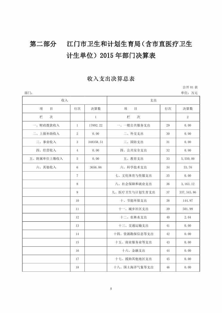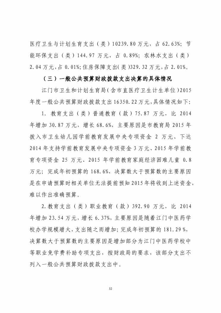 附件:江门市卫生和计划生育局2015年度部门决算公开.doc