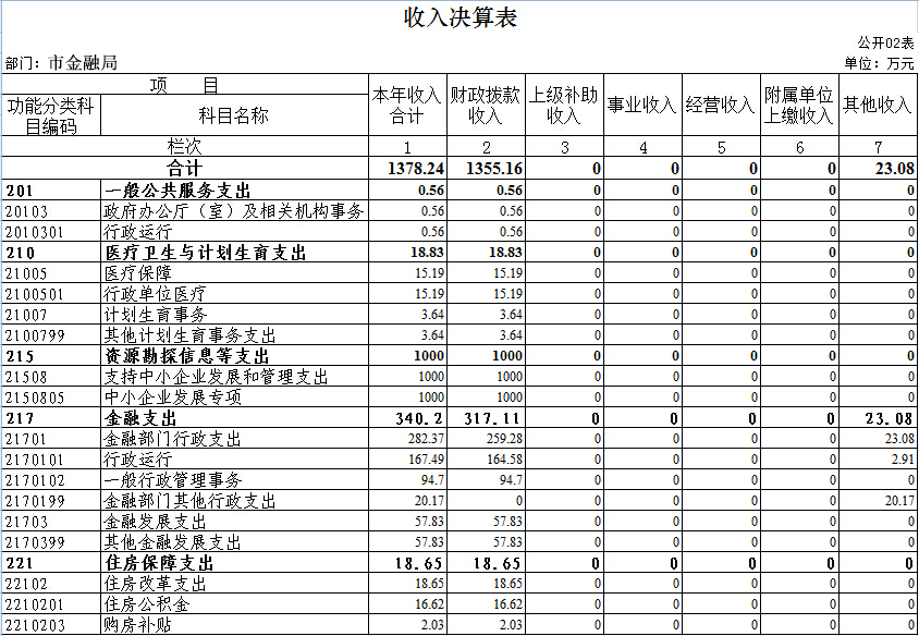 二、收入决算表