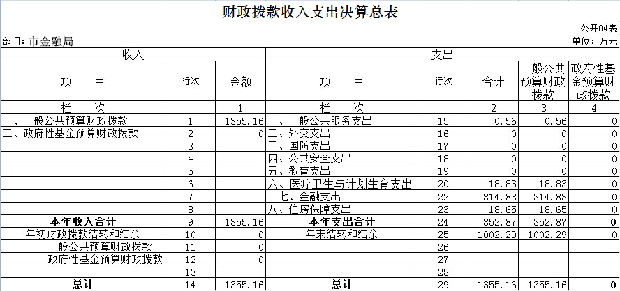 四、财政拨款收入支出决算总表