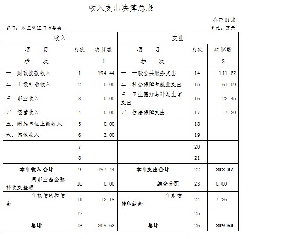 一、收入支出决算总表