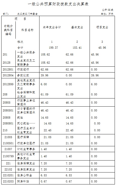 农工党刚江门市委会2015年度一般公共预算财政拨款支出 199.37万元,具体情况如下: