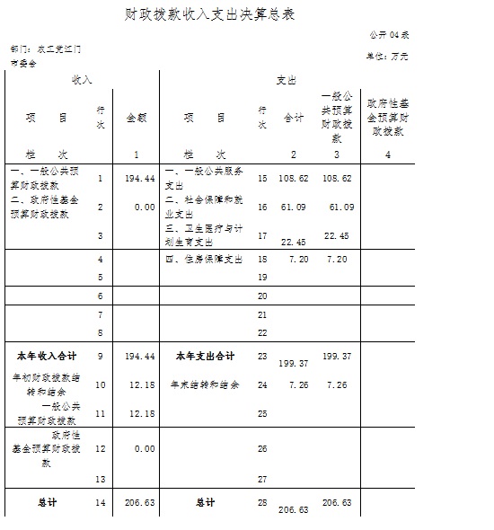 四、财政拨款收入支出决算总表