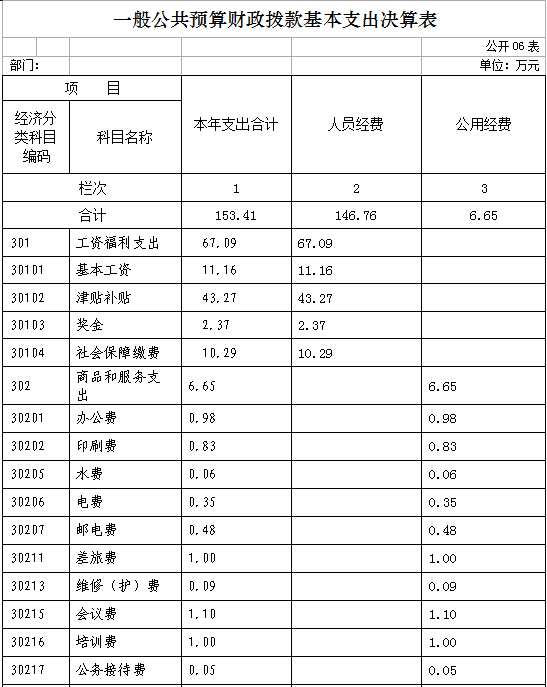 六、一般公共预算财政拨款基本支出决算表