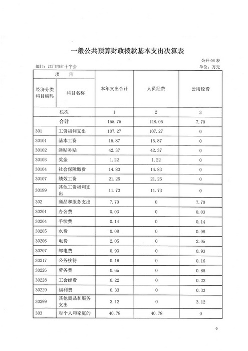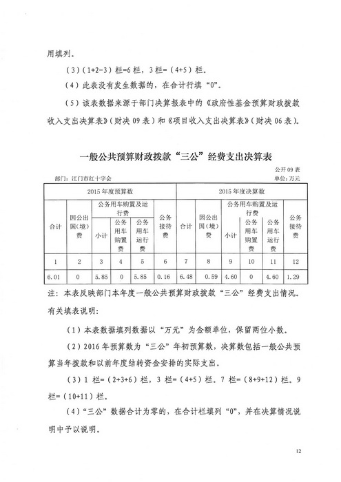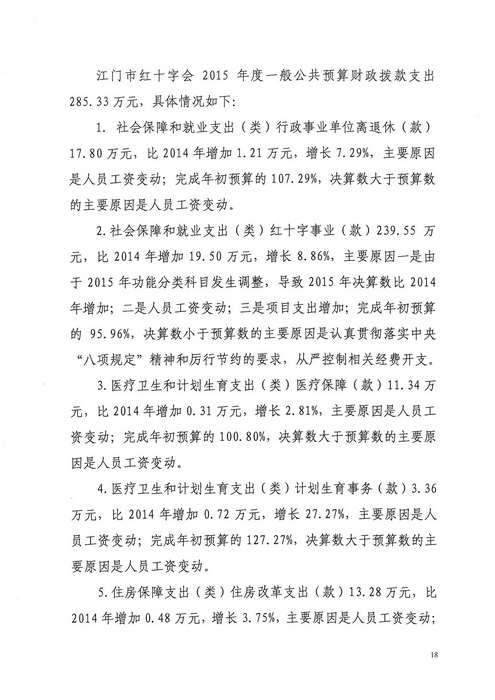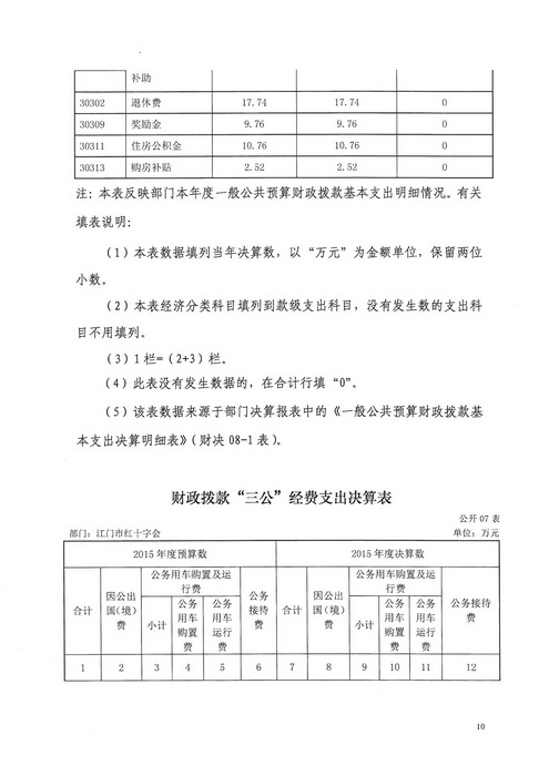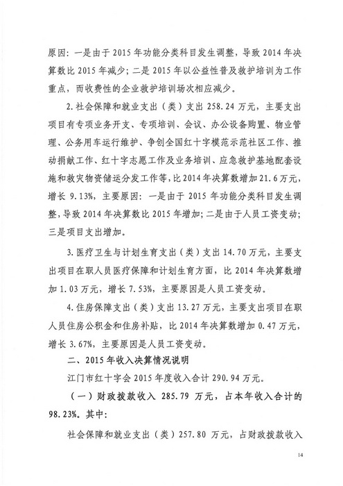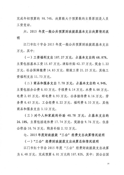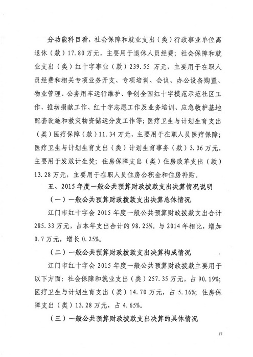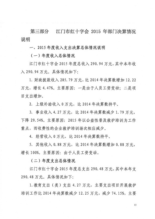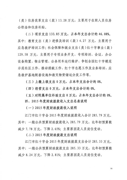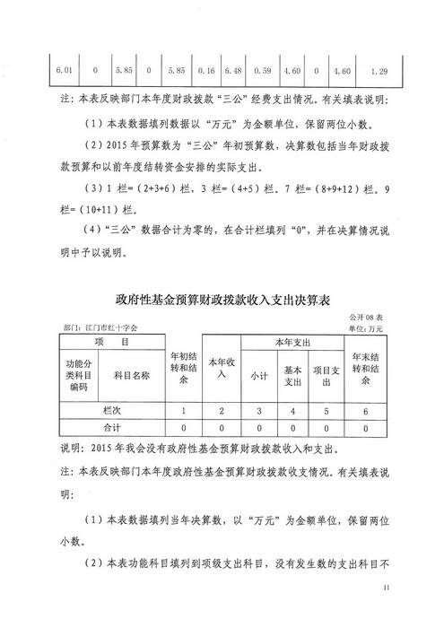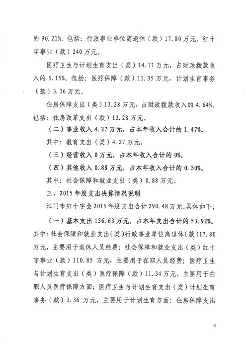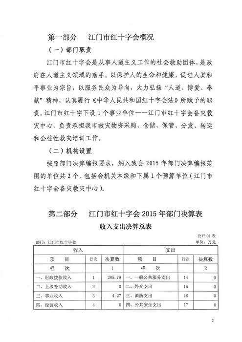 2015年江门市红十字会部门决算