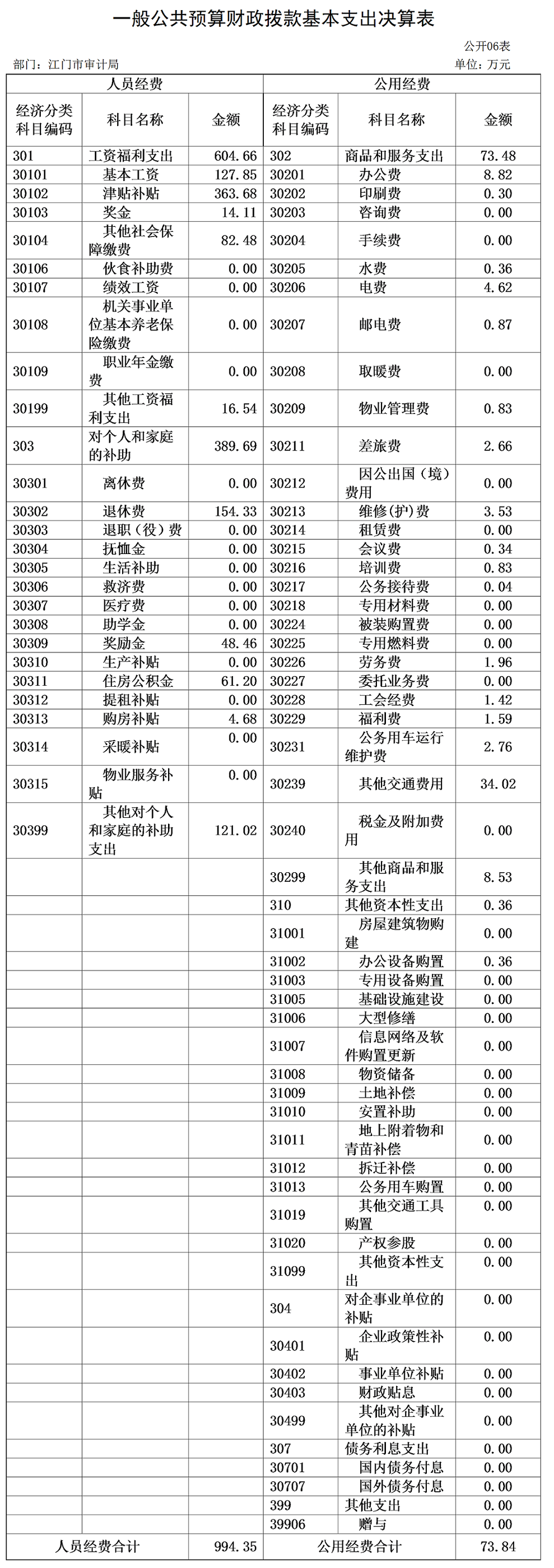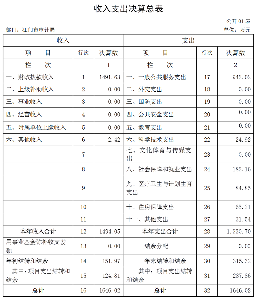 第二部分 江门市审计局2016年部门决算表