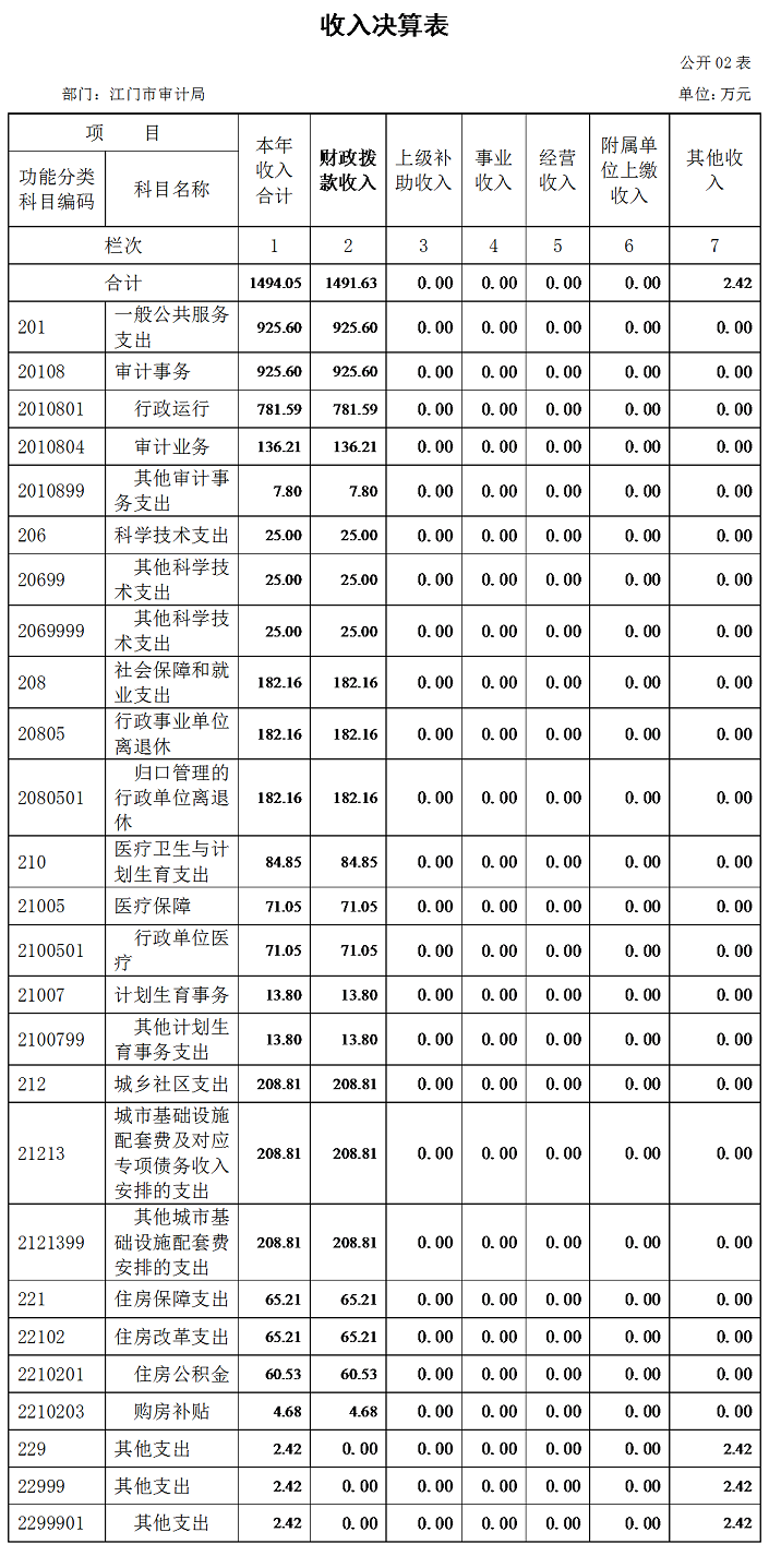 江门市审计局2016年度收入合计1494.05万元。