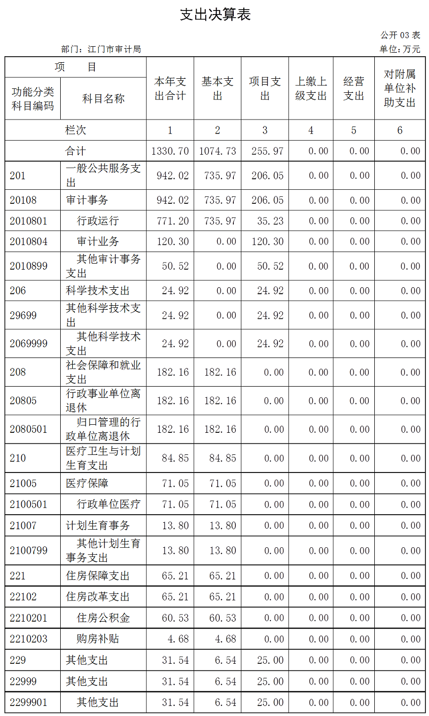 江门市审计局2016年度支出合计1330.70万元。具体如下: