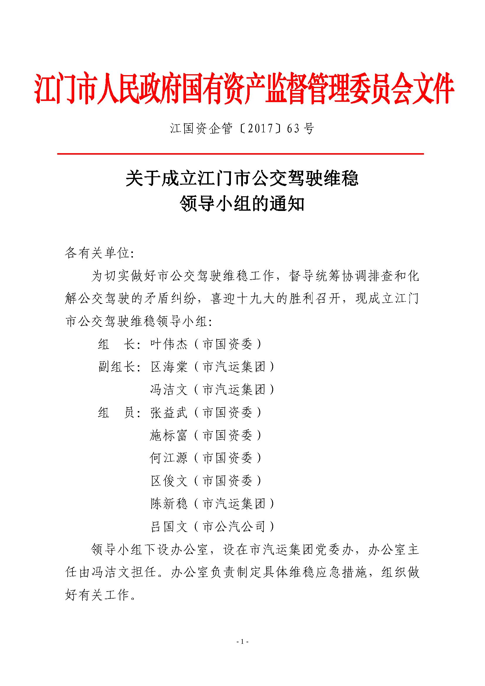 江国资企管[2017]63号_关于成立江门市公交驾驶维稳领导小组的通知.ceb