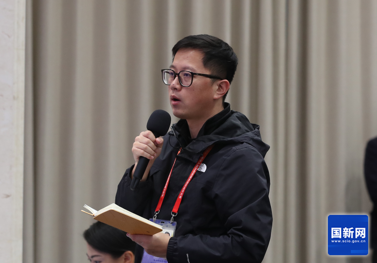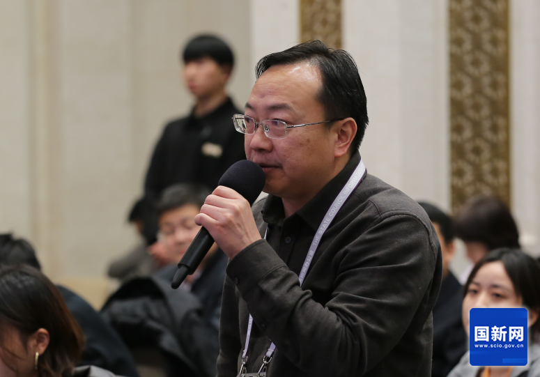 中央广播电视总台央视记者提问(赵一帆 摄)