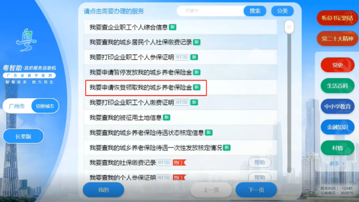 第一步:点击【我要申请恢复领取我的城乡养老保险金】