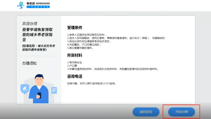 第二步:点击【开始办理】
