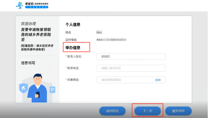 第四步:填写申办信息,点击【下一步】
