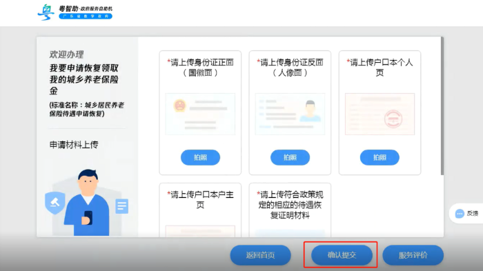 第六步:上传申请材料,点击【确认提交】