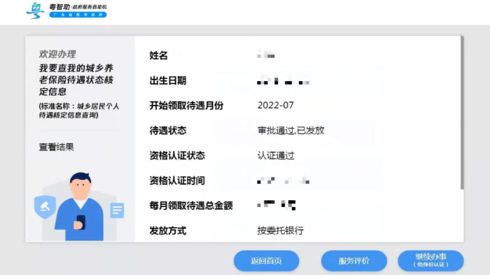 查询我的城乡养老保险待遇状态核定信息
